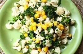 Conopida si broccoli se taie în buchețele cât mai mici și se stropesc cu ulei de porumb ( pentru că este dulce, nu ulei de măsline, pentru ca este amărui). Se adaugă sare și pătrunjel tocat pentru a rotunji gustul deja dulce cu noi arome.
